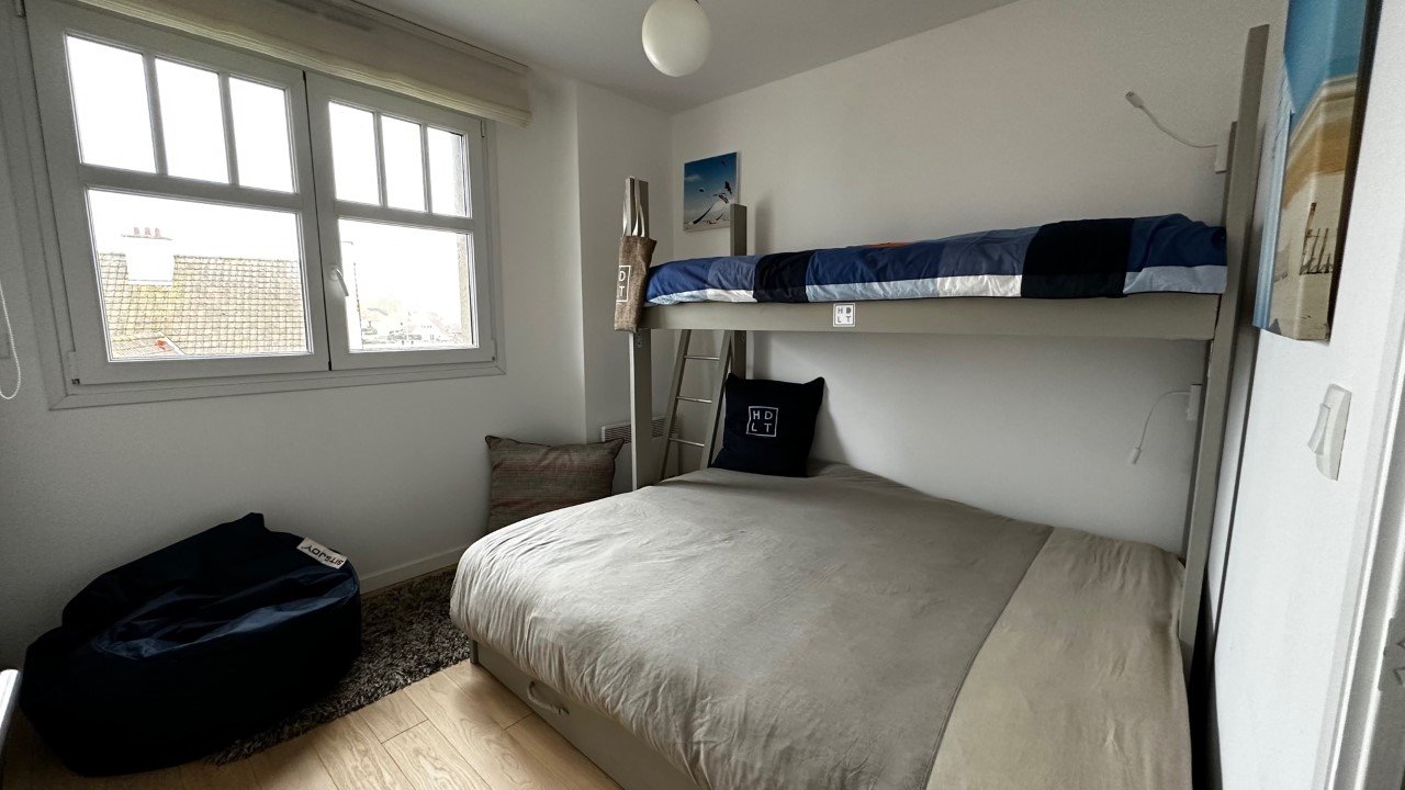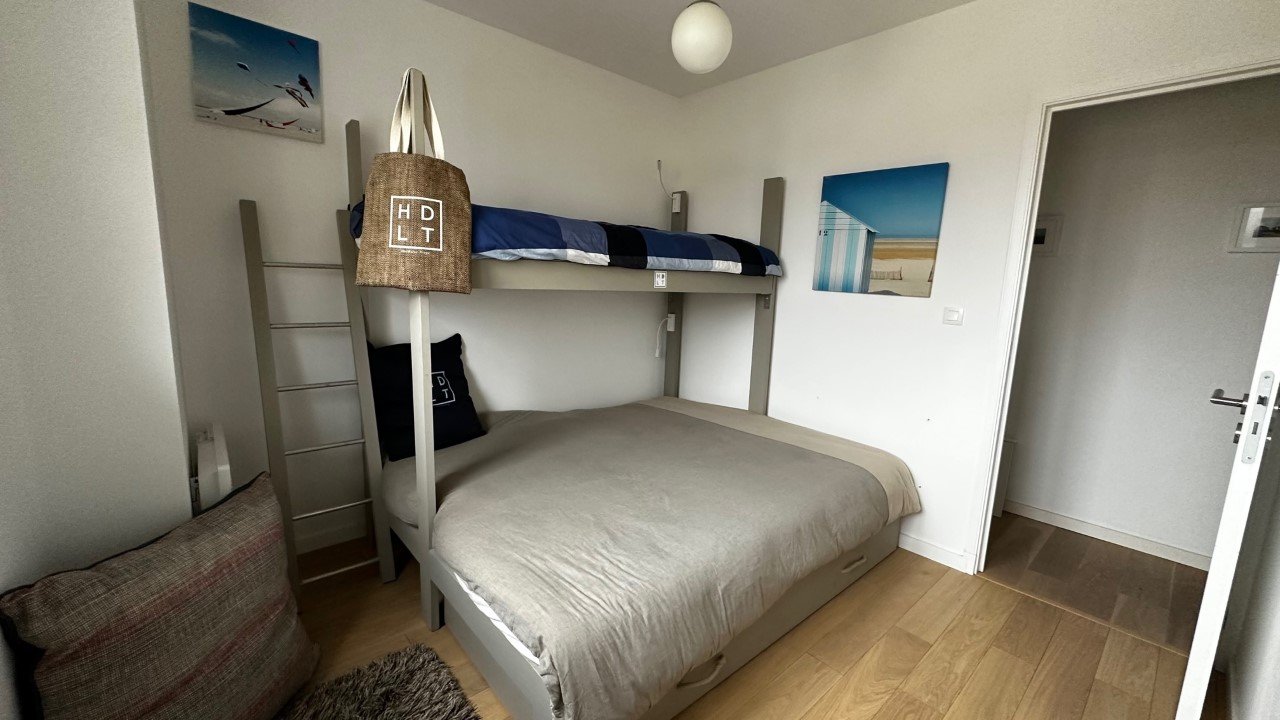 Une chambre avec lits jumelés, une deuxième chambre avec lit double et 1 lit superposé.
