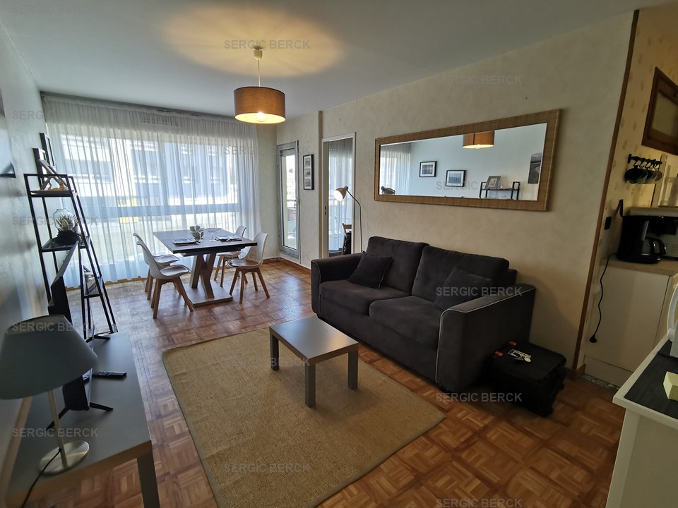 Appartement une chambre pour 4 personnes, situé dans une résidence avec ascenseur. Ce logement vous offre un séjour avec un canapé convertible pour 2 personnes (140), un coin cuisine équipée, une chambre avec un lit 2 personnes (160) qui donne sur une terrasse, une salle de bains avec baignoire, un wc séparé.