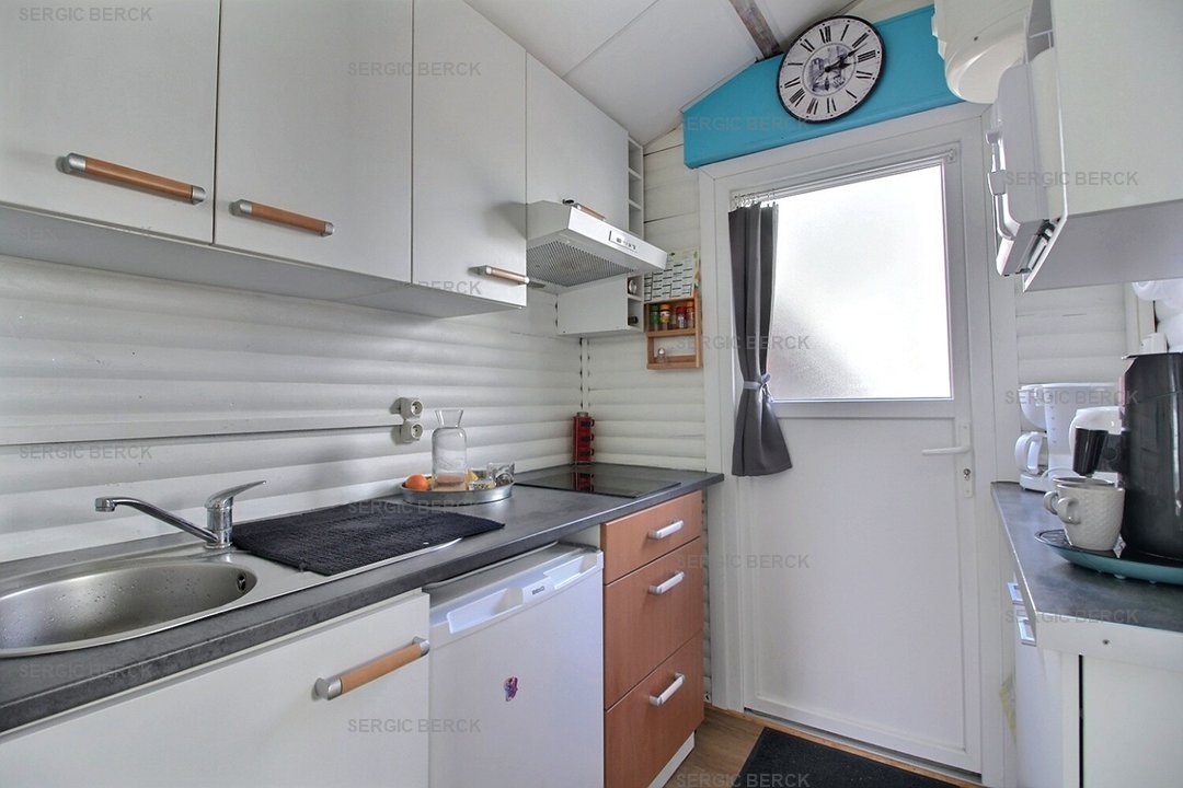 Chalet coquet pour 4 personnes, idéal pour passer un bon séjour à proximité du centre et de la plage, il se compose d'une pergola fermée et une terrasse ensoleillée à l'arrière, un séjour avec un clic clac 2 personnes, une chambre avec un lit 2 personnes, une salle d'eau avec douche, wc, une kitchenette équipée, chauffage électrique. Terrasse en bois. Terrain fermé.