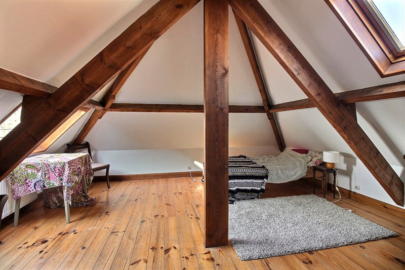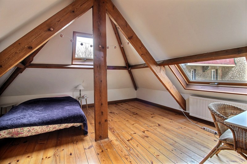 A l'étage : 1 chambre avec lit double 140, et 1 chambre avec lit simple 80 et un lit double 140. Une deuxième salle de bains avec WC