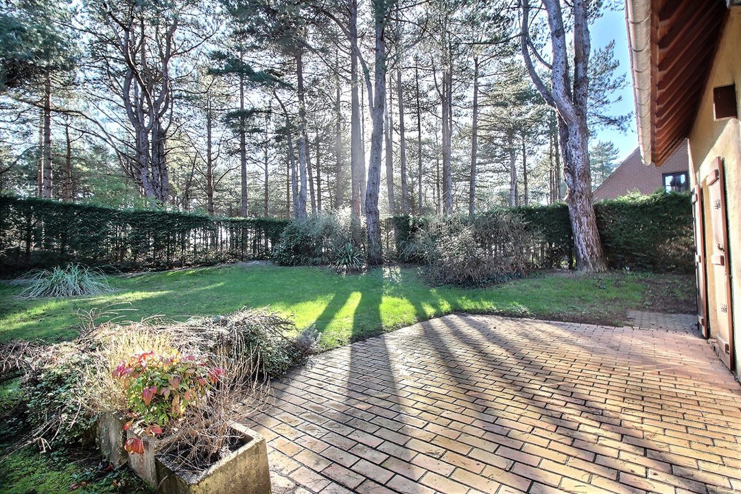 Terrasse avec beau jardin donnant sur la piste cavalière.