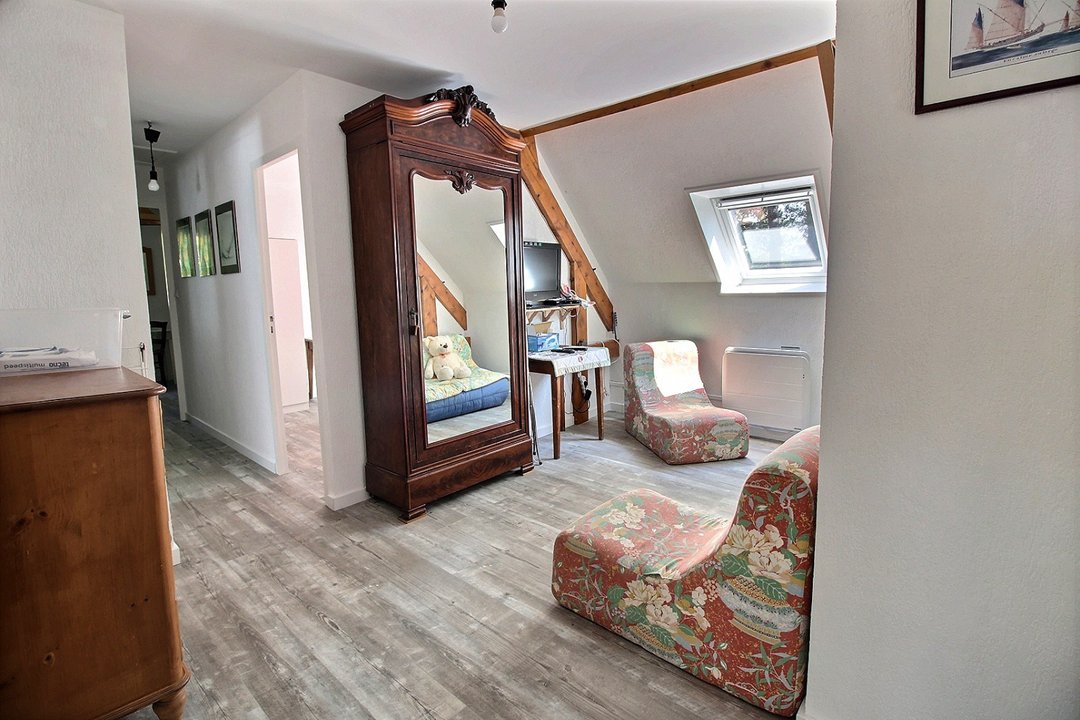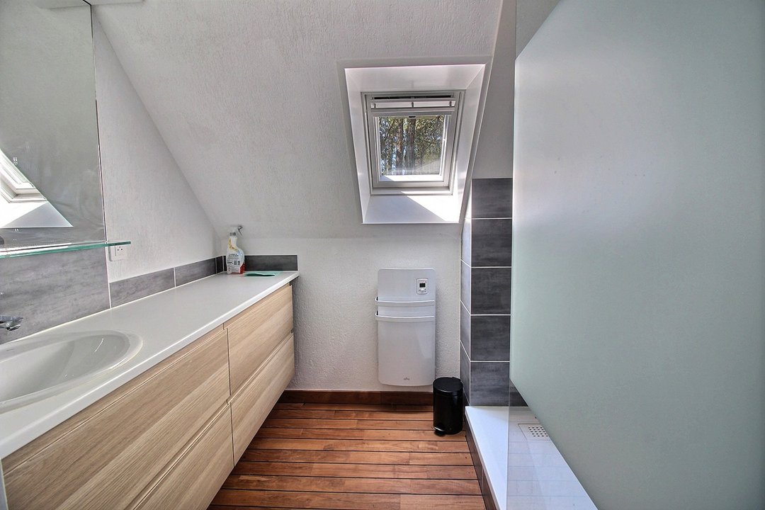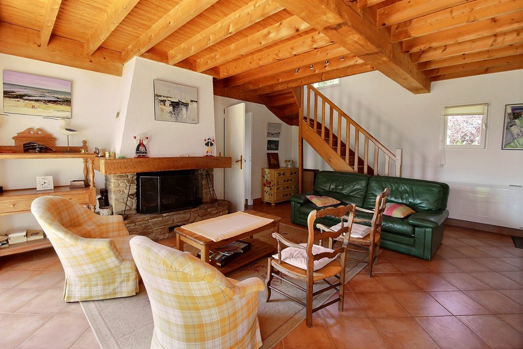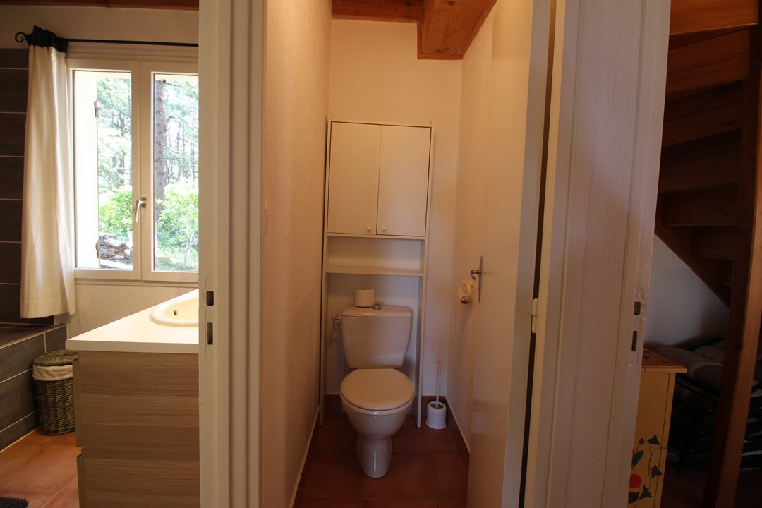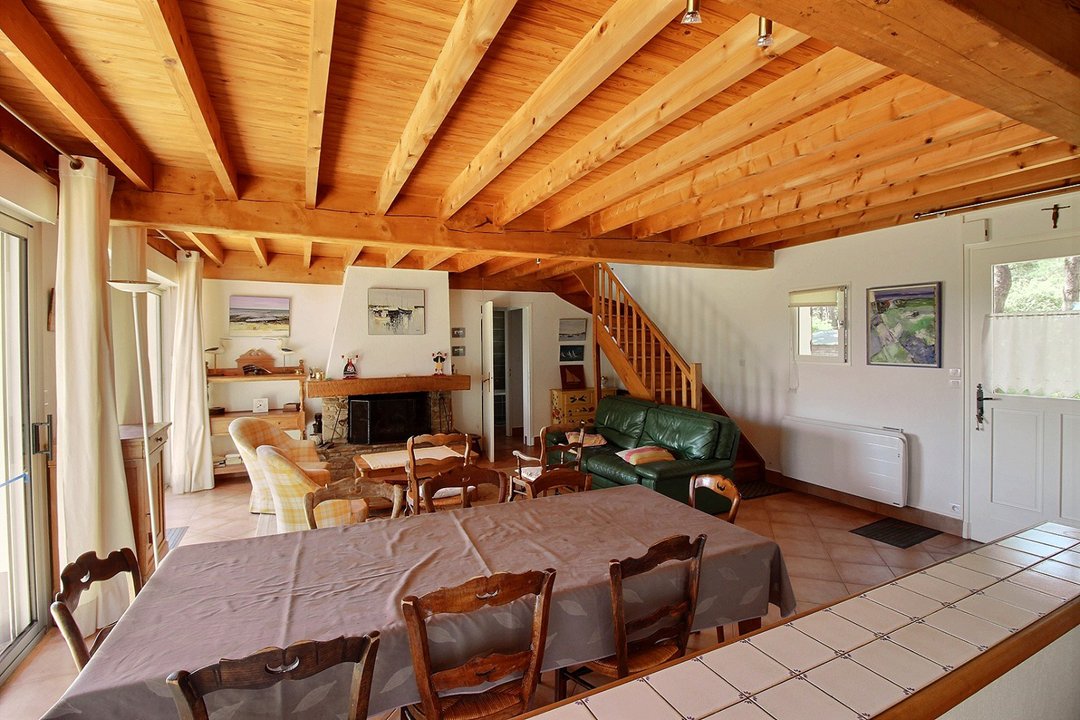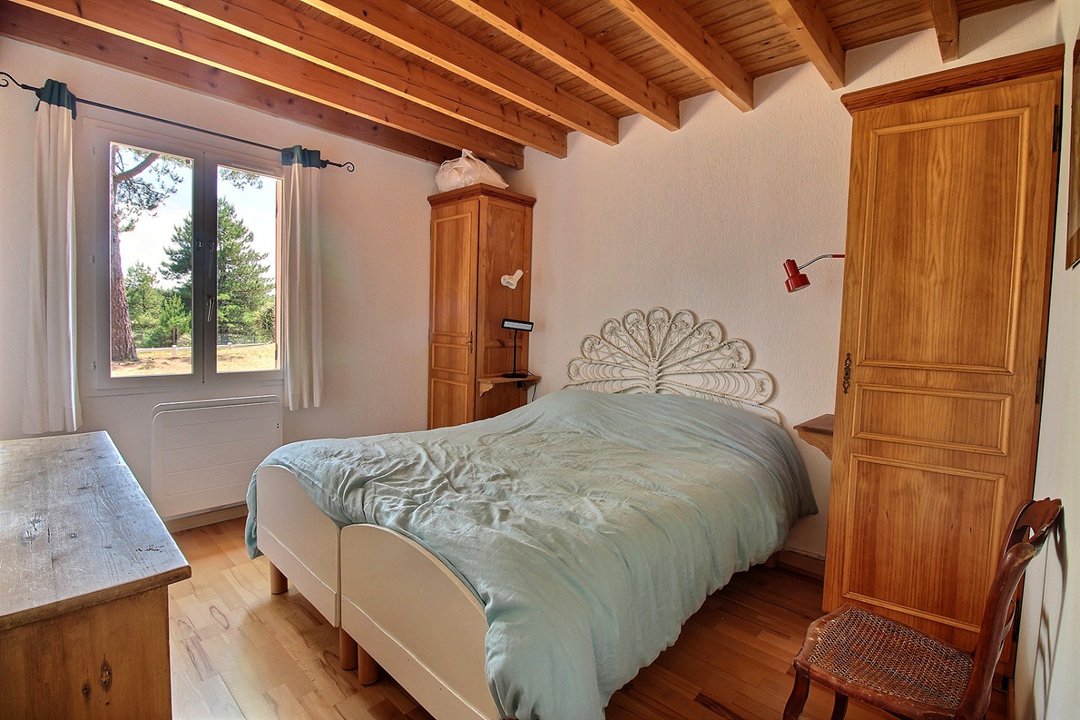 Au rez-de-chaussée : salon-séjour, cuisine ouverte, salle de bain, WC, 1 chambre avec lit double en 160. A l'étage : 3 chambres avec lit double ( lit jumelé 2x80 ), une salle d'eau avec lavabo, et WC. Terrasse avec beau jardin donnant sur la piste cavalière.