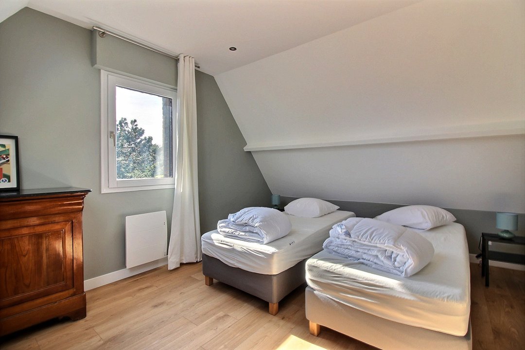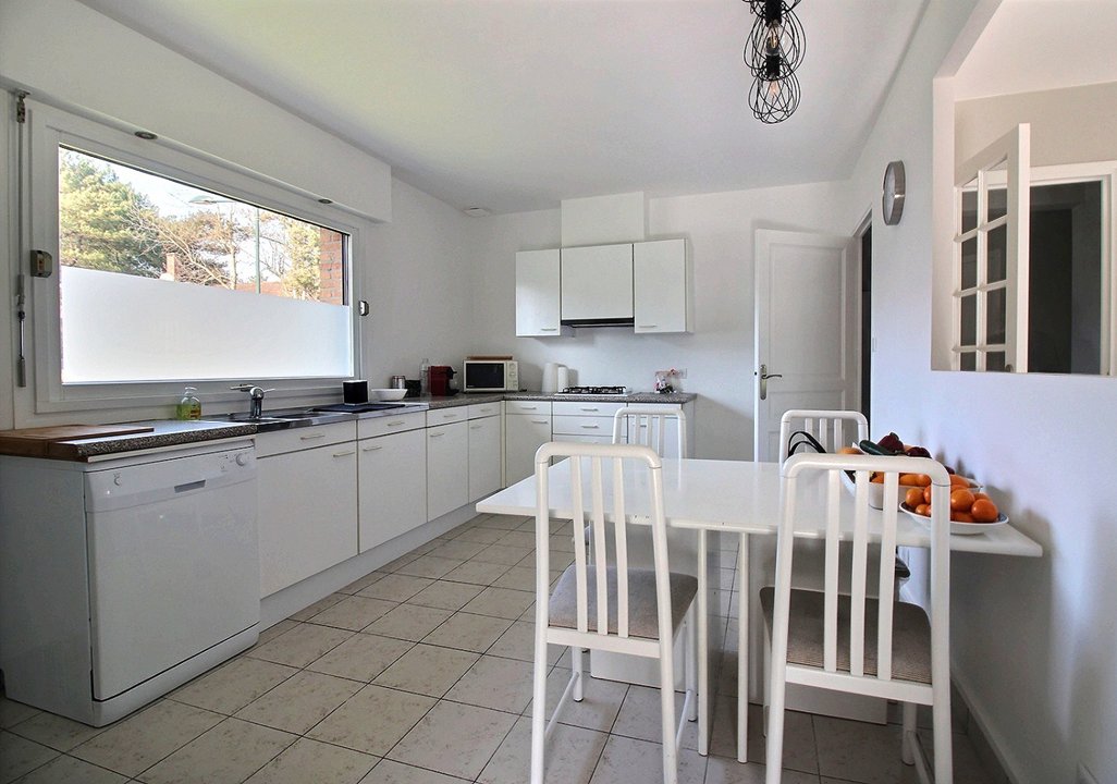A proximité du sable fin et du centre ville, maison avec beau jardin, pour 8 personnes, dans un secteur calme, offrant :