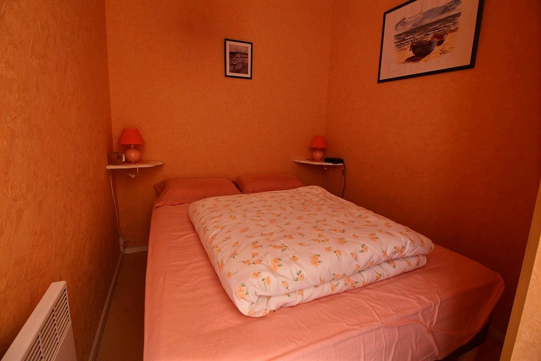 Une cabine avec lit double 140. Un clic-clac dans dans le séjour.
