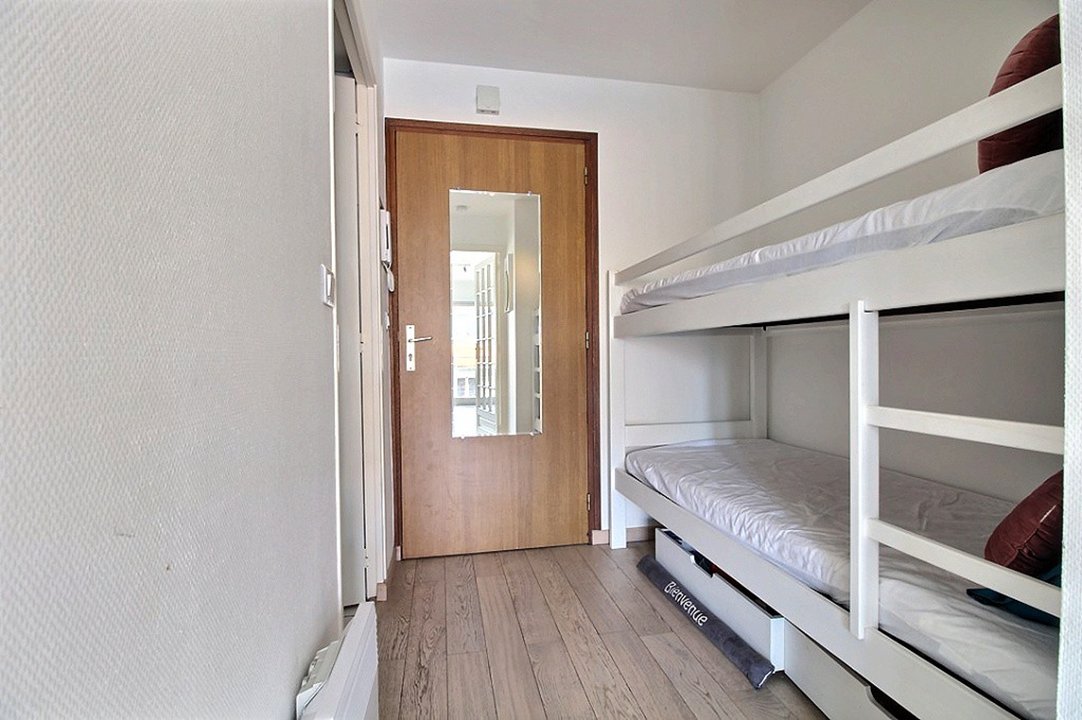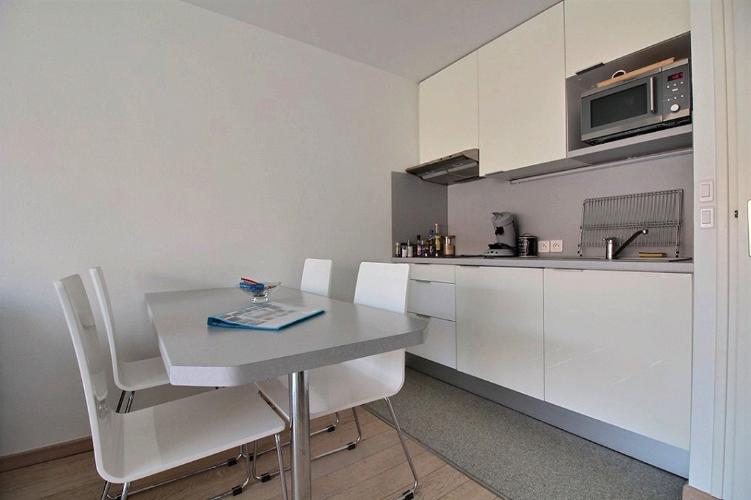 Agréable studio de 26 m2 à la décoration soignée, au 2ème étage d'une copropriété offrant une grande pièce à vivre ouverte, accueillant le couchage lit superposé en cabine, un salon avec possibilité d'un premier couchage (canapé convertible en 140), des rangements mis à disposition, une petite kitchenette très bien équipée.