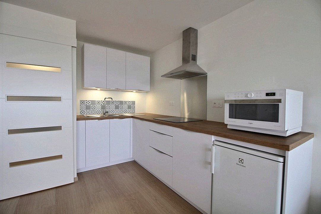 Agréable studio lumineux de 36m2 entièrement refait à neuf, bien équipé avec vue mer offrant : une grande pièce à vivre totalement ouverte, accueillant un lit double (140), un salon lumineux (avec un grand balcon face mer) comprenant un clic-clac(140), des rangements mis à disposition, une cuisine ouverte rénové et équipée.