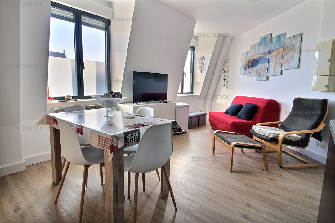 Appt type 2, pour 4 personnes au 3ème étage d'un immeuble avec ascenseur, qui se compose d'un séjour avec un BZ 2 pers (140), un coin cuisine équipé, une salle d'eau avec douche, wc séparés, un chambre avec un lit double (2 x 90), chauffage électrique, climatiseur, un emplacement parking privé