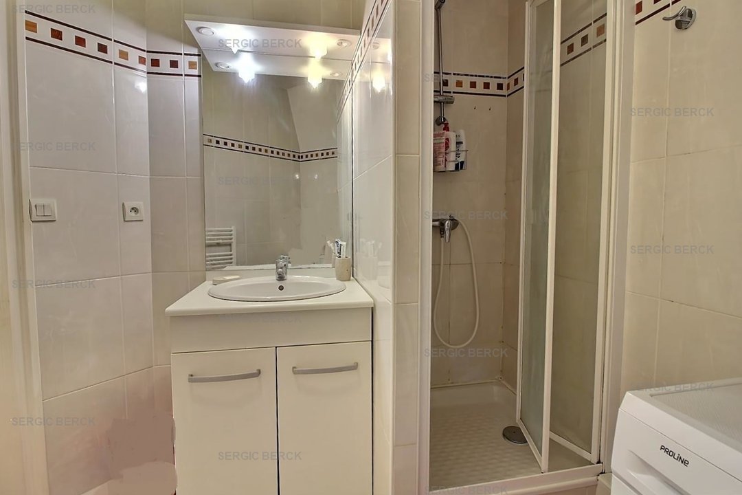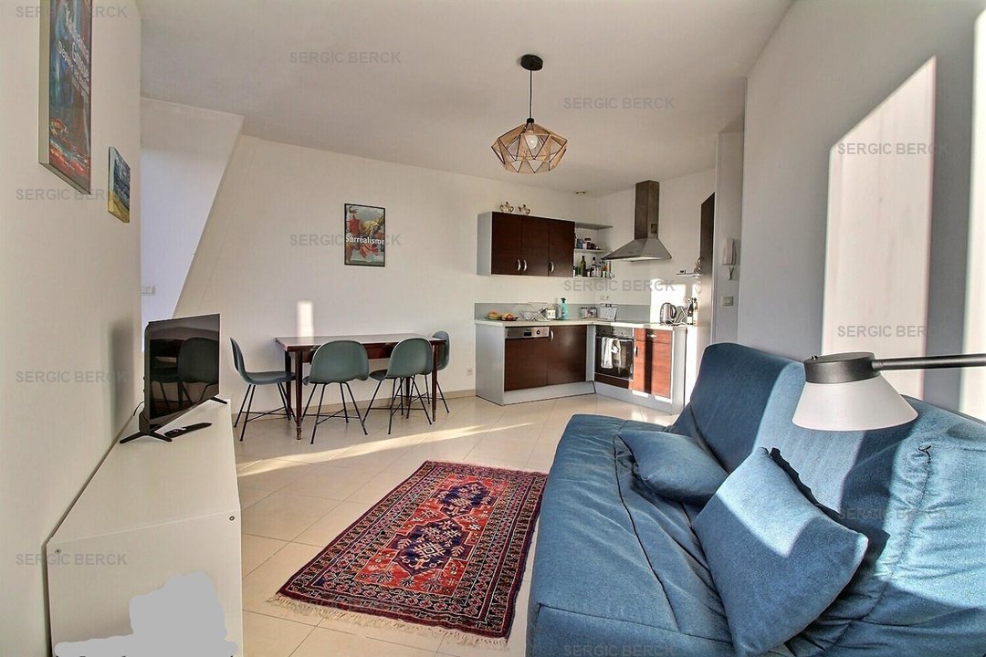 Cet appartement dispose d'une entrée, d'un salon ouvert sur une cuisine équipée, d'une chambre et d'une salle de bain avec WC.