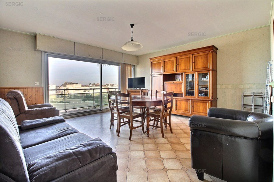 Appartement pour 5 personnes au 3ème étage d'une résidence avec ascenseur ; vous disposez d'un séjour avec un canapé convertible pour deux personnes avec balcon vue mer, une chambre avec un lit double (140), un coin cabine avec un lit superposé pour une personne (90), une kitchenette équipée avec plaques au gaz, une salle de bains avec baignoire, wc (sur-élevé par une petite marche) indépendant. le chauffage est au gaz de ville.