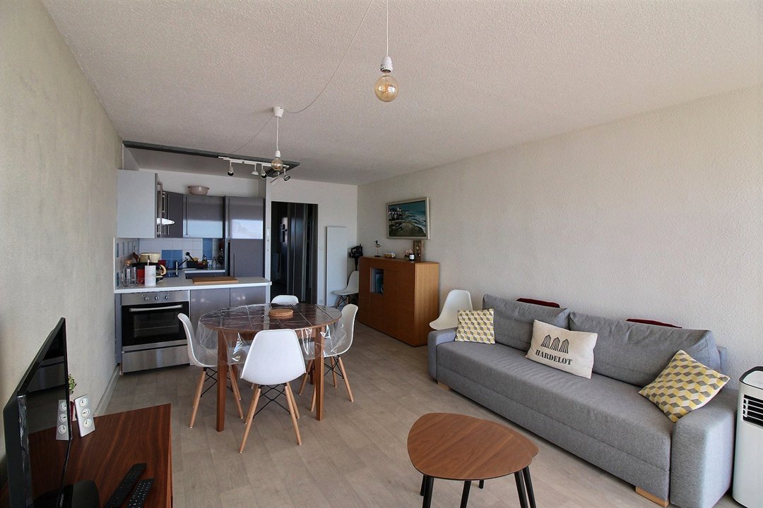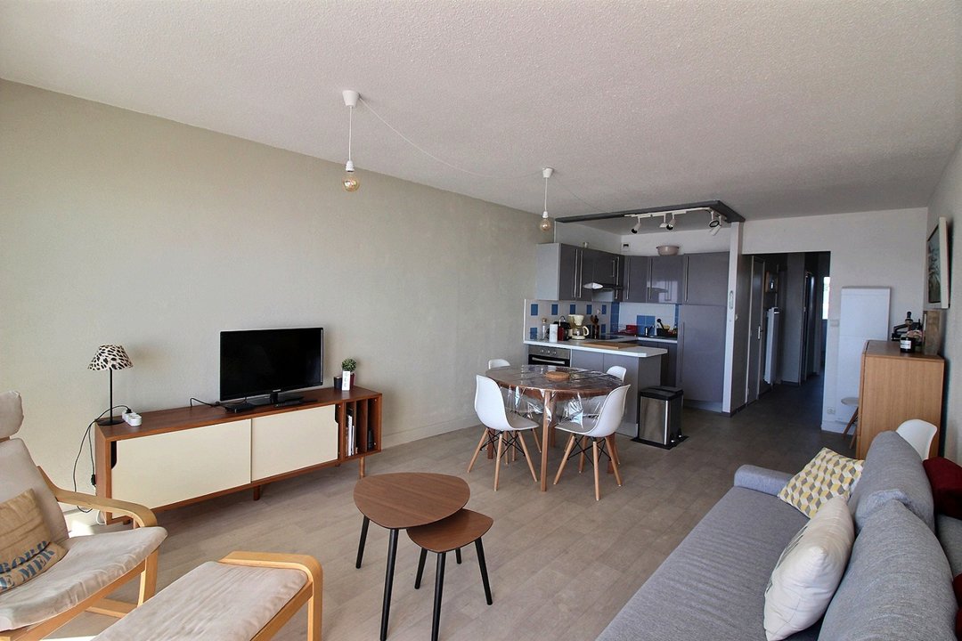 Salon/séjour avec balcon vue mer. Cuisine équipée.