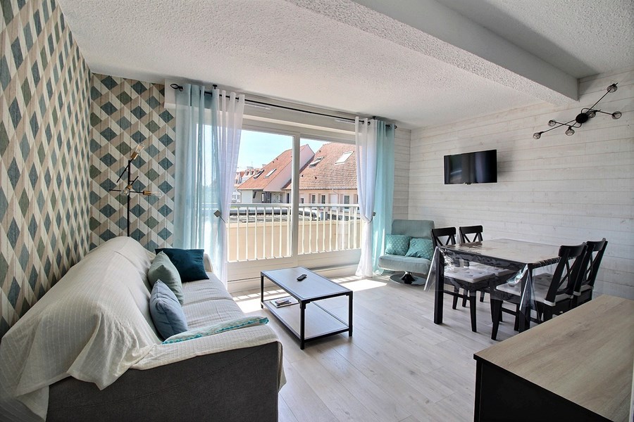 A proximité immédiate de la mer et du centre ville, appartement au 1er étage, pour 4 personnes, offrant :