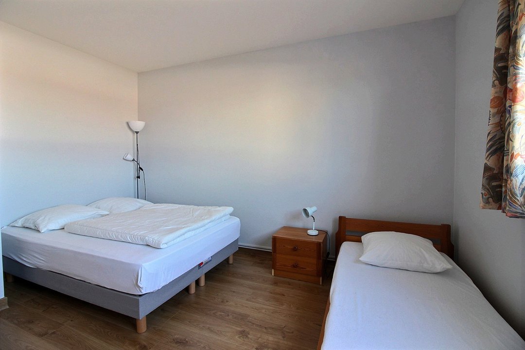 Une chambre avec un lit double en 140 et un lit simple en 90.