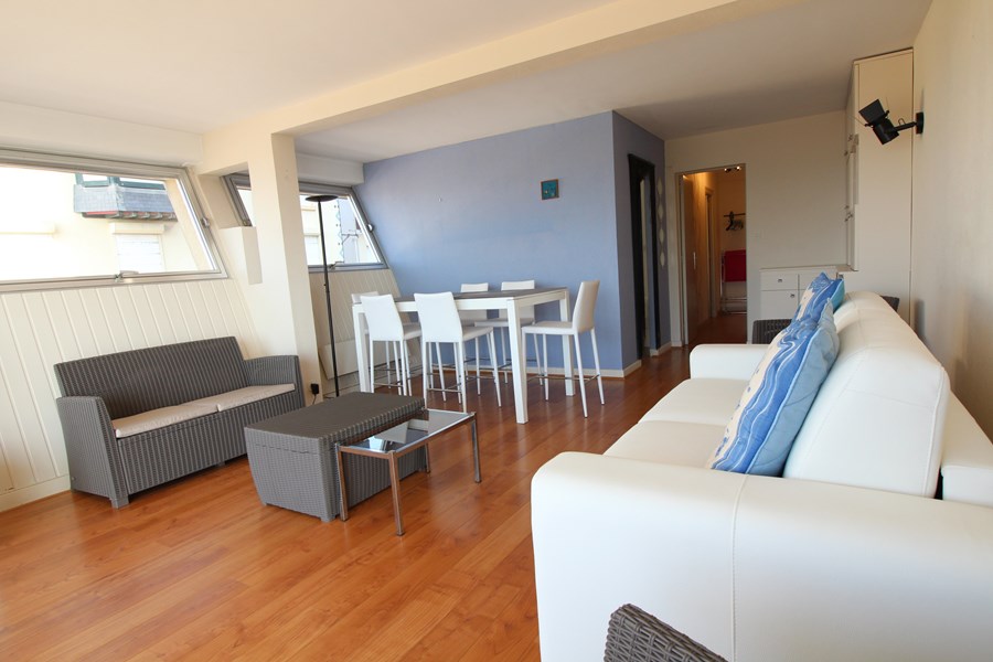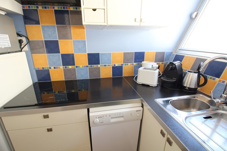 Dans une résidence idéalement placée en front de mer et proche du centre ville avec son marché couvert, bel appartement 1 chambre au 1er étage, offrant : un séjour lumineux avec balcon vue mer avec canapé convertible en 140, une cuisine équipée, une chambre avec lit double 160. Une salle d'eau et wc séparé.