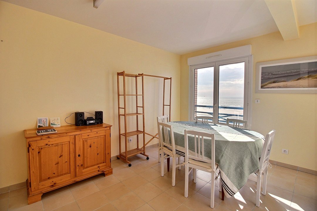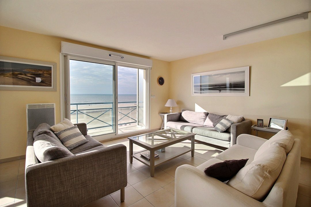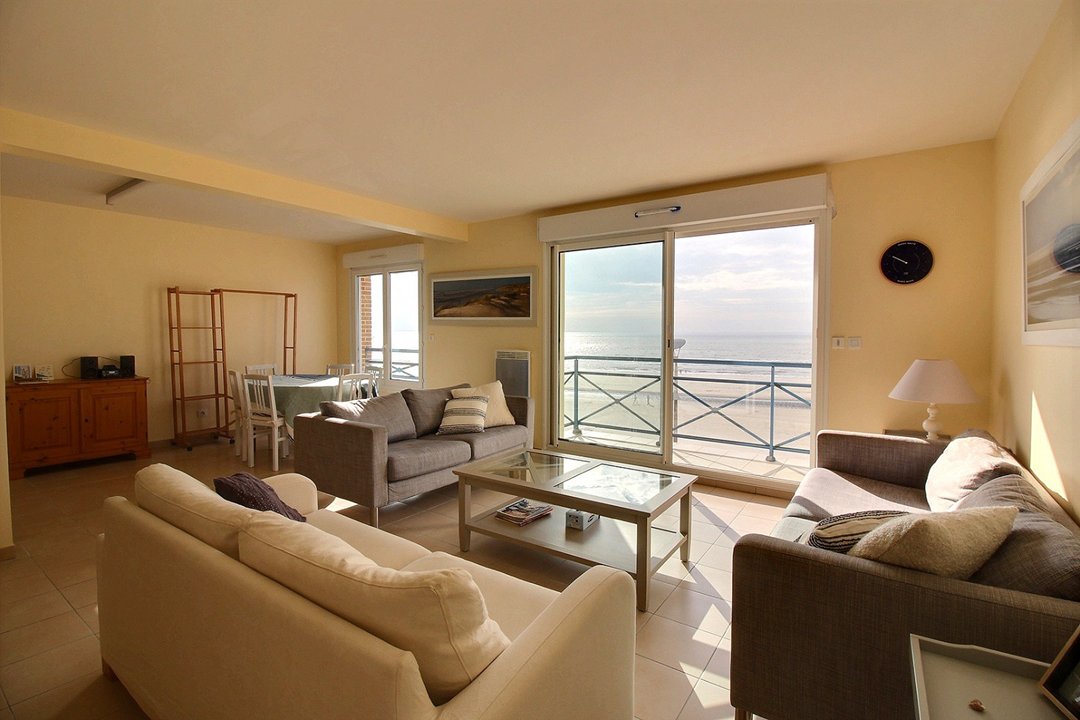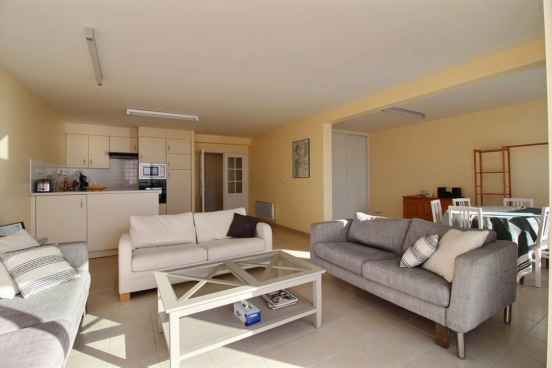 Salon/séjour avec cuisine aménagée et équipée vue mer.