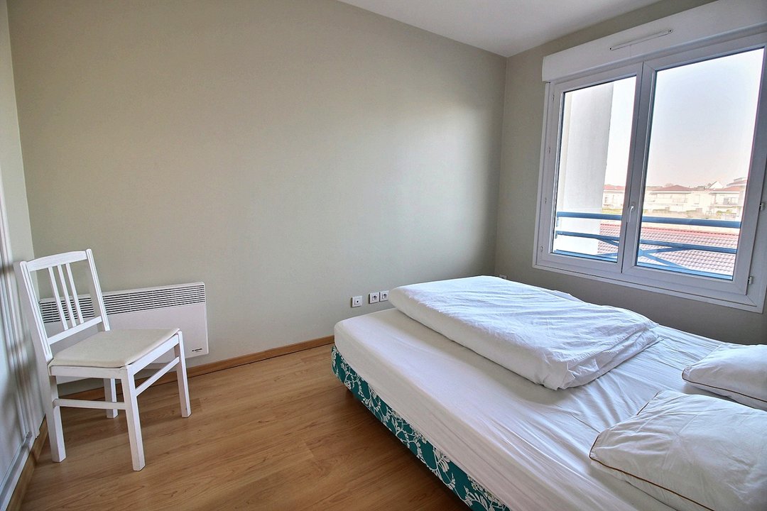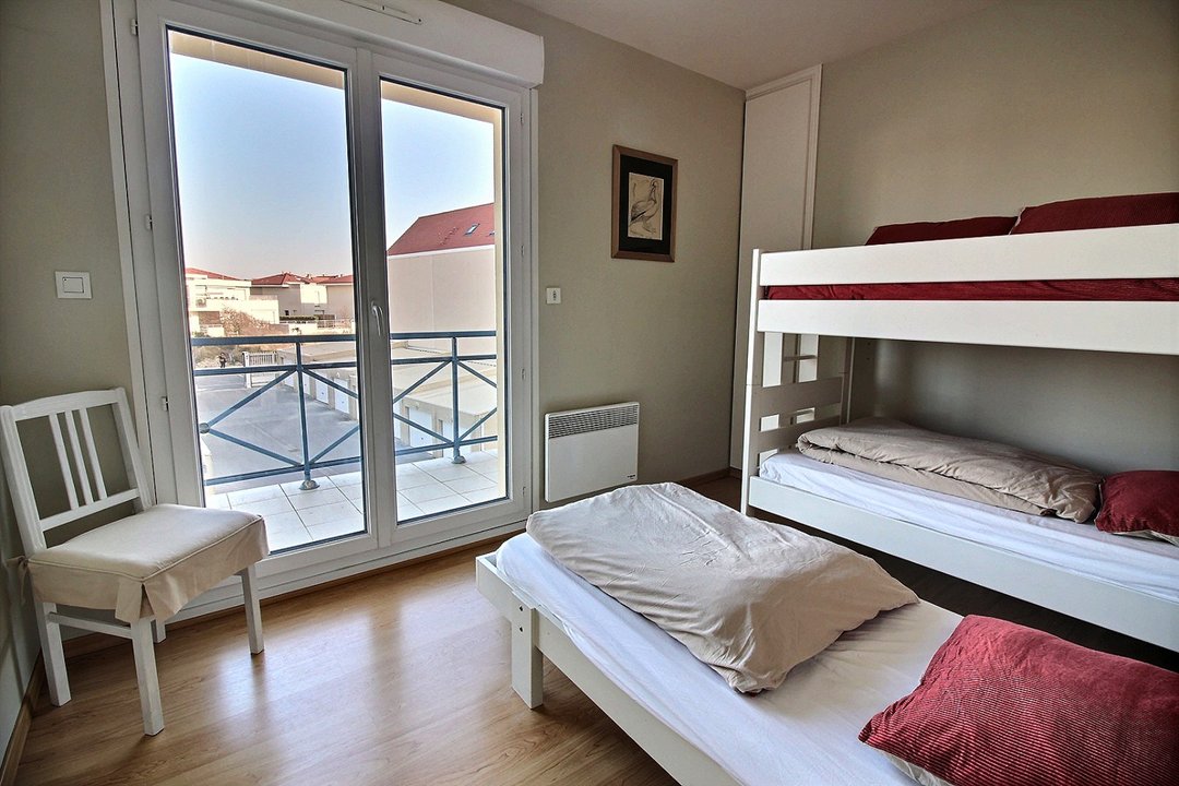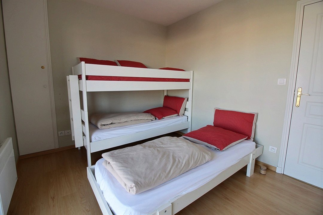 Une chambre avec lit double en 160 (2x80), et une chambre avec 3 lis simples en 80.