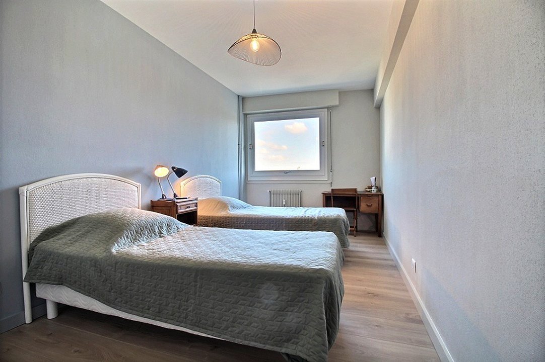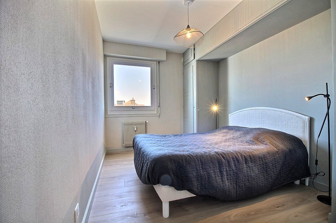 Dans une résidence de standing en front de mer et proche du centre ville, bel appartement 2 chambres au 4ème étage, offrant : un séjour lumineux et spacieux, avec balcon vue mer, une cuisine équipée, une chambre avec lit double de 140 et une deuxième chambre avec 2 lits simples 90. Une salle d'eau équipée d'une douche, wc séparé. De plus, une place de parking est allouée au logement.