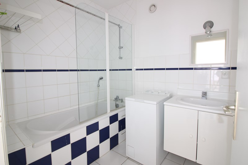 Salle de bain avec lave linge et WC séparé.